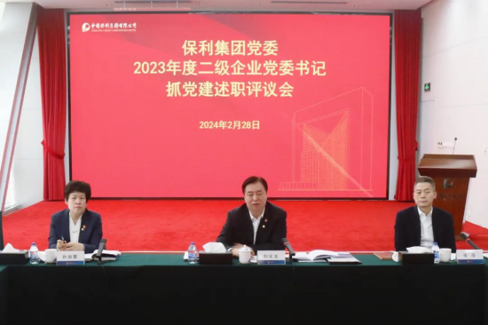 2月28日,保利集團黨委在京召開2023年度二級企業黨委書記黨建工作述職會議暨2024年度黨建責任書簽署儀式,集團公司黨委書記、董事長劉化龍參加會議并講話,黨委常委、紀委書記孫麗霞參加會議,會議由黨委副書記張浩主持。