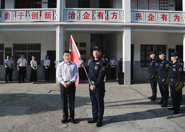 董長清為保利物業西塘服務中心獲得“一星級全國青年文明號”稱號的青年集體授旗