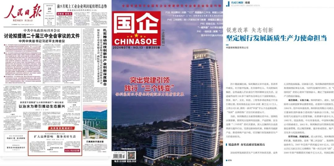 聚焦改革發展突出成就。《人民日報》頭版“高質量發展調研行”專欄刊發《穩健發展多元業務 擴大品牌影響 服務美好生活》一文,《國企》《國資報告》刊發集團署名文章,分別展現保利以卓著品牌建設助力高質量發展、堅定履行發展新質生產力使命等動態實效;此外,保利集團借勢重大節點策劃的卓越四十年高質量發展篇——深中通道通車專題報道,獲人民日報、新華社、央視、國資小新等廣泛報道,社會反響良好,進一步深化社會各界對“卓越保利”的認知度、認可度、美譽度。