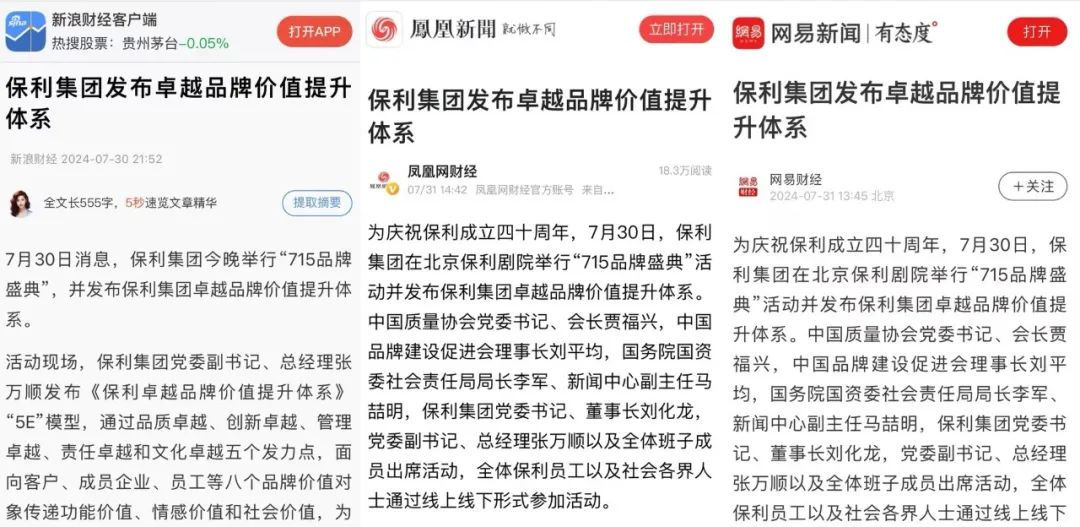 聚焦品牌盛典活動盛況。人民日報發布整版版面《有為跨山海?卓越向未來》,凸顯保利堅守初心、服務家國的企業標識;人民網進行首頁焦點圖輪播并發起“7·15品牌盛典”云直播。此外,光明日報、經濟日報、中國日報、中國青年報等數十家權威主流媒體和鳳凰新聞、網易新聞、新浪財經各類行業媒體累計曝光數據近3000萬,充分肯定了保利胸懷“國之大者”,帶動行業發展的引領性、示范性。